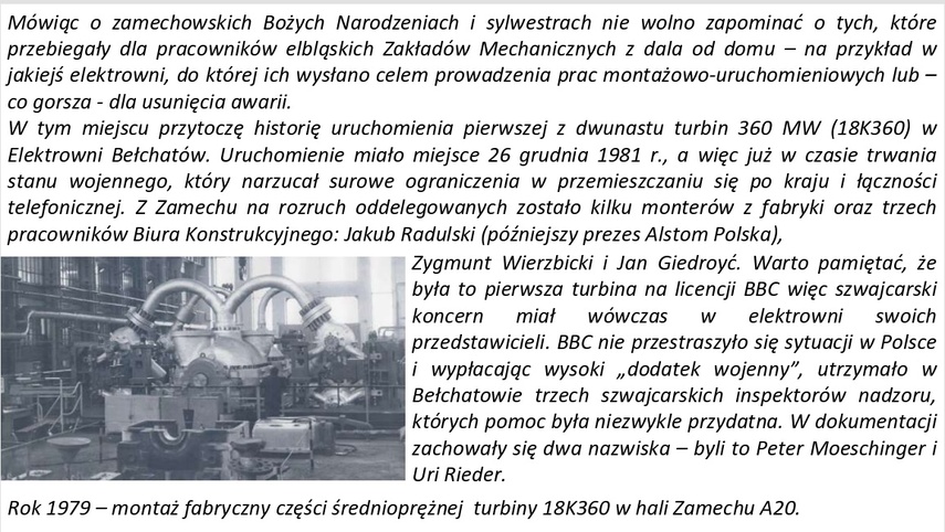 - „Trzy generacje zamechowskich turbin ciepłowniczych”