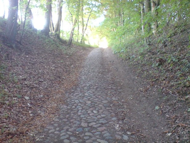 Był to ciekawy, rzadki już w Elblągu, historyczny trakt, używany współcześnie przez wielu elblążan do pieszych spacerów po Bażantarni. To bezmyślność firmy prowadzącej prace ziemne na Górze Chrobrego, niwelującej teren i wycinającej drzewa! Czy jest zgoda i przyzwolenie właściciela terenu (Miasta Elbląg). Dokumenty nie słowa. Teraz ciężkim sprzętem dokonali zniszczenia drogi, która jest drogą publiczną i nie jest przedmiotem dzierżawy. Może zainteresować sprawą samego prezydenta Wilka lub wiceprezydenta Hajdukowskiego, aby nie pozamiatano sprawy „pod dywan”. Ktoś powinien ponieść konsekwencje, a droga winna zostać doprowadzano do stanu pierwotnego (odtworzony stary bruk), a nie zaorana.