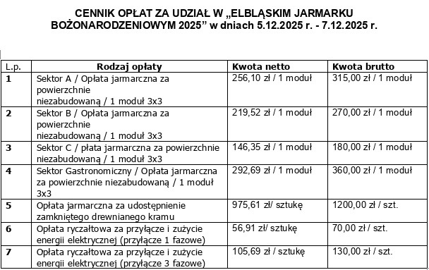 Jarmark chce ponownie zrealizować Grupa Merlin Andrzej Duszyński z Elbląga, która za swoje usługi oczekuje niespełnia 84 tys. zł. Wydarzenie odbędzie się w terminie 5-7 grudnia. Ponownie pojawią się na nim produkty regionalne o charakterze rzemieślniczym, wydarzenia będzie miało elementy kulturalno–artystyczne.