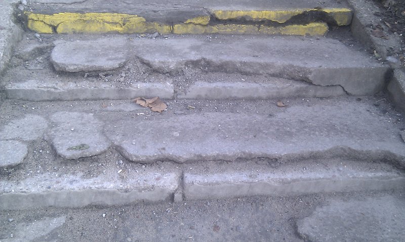 Szczególnie chcę zwrócić uwagę na schody, które prowadzą do ul. Robotniczej. Są zdewastowane i niebezpieczne, szczególnie zimą. Kilka osób już się tam przewróciło. Powinny być jak najszybciej wyremontowane i bardziej wygodne dla osób starszych. Zimą zaś posypane piaskiem lub solą.