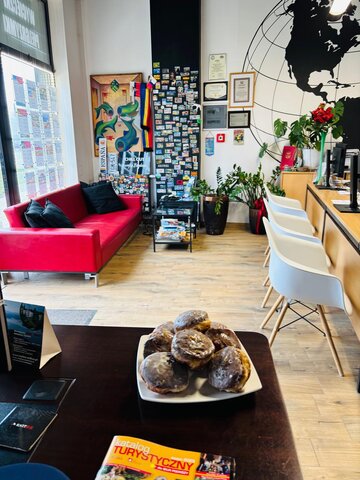- Sprzedaż biletów: autokarowych, lotniczych i promowych