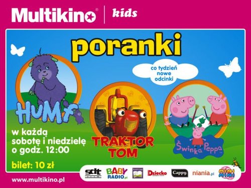 W każdą sobotę i niedzielę Multikino zaprasza wszystkie dzieci powyżej 2 lat na poranki z ich ulubionymi bajkami. W maju na najmłodszych widzów czekają: Hutosie, Krecik, Super Auta, Świnka Peppa, traktor Tom i Humf.