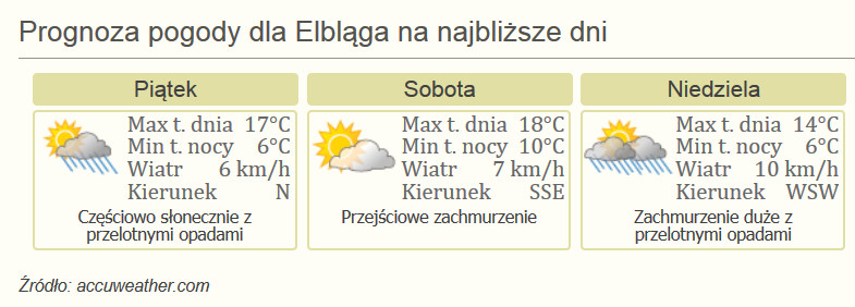 Pogoda, podobnie jak w poprzedni weekend, w kratkę - dziś częściowo słonecznie, ale z opadami, jutro dla odmiany czeka nas przejściowe zachmurzenie, za to będzie ciepło - do 18 stopni. W niedzielę nieco chłodniej i do tego zachmurzenie duże z przelotnymi opadami. Pogodę na bieżąco sprawdzicie tutaj.