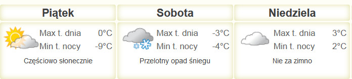 W ten weekend będzie zimno. W sobotę -3 i przelotne opady śniegu a w niedzielę 3 na plusie.