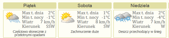 W ten weekend pogoda będzie w kratkę. Na przemian słońce i deszcz a w niedzielę deszcz ze śniegiem.