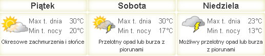 Piątek ma być słoneczny, choć mogą wystąpić okresowe zachmurzenia. W sobotę i niedzielę musimy, niestety, liczyć się z przelotnymi opadami i burzami z piorunami.