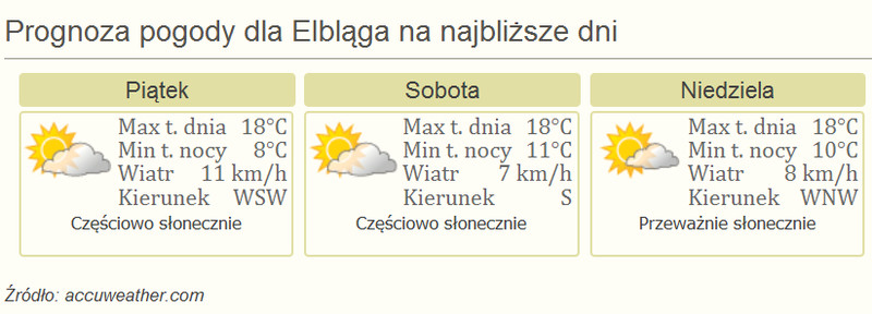 Wygląda na to, że aura będzie nam znowu sprzyjać: dzisiejsza prognoza pogody wskazuje, że będzie raczej słonecznie, a temperatura dochodzić będzie do 18°C. Pogodę na bieżąco sprawdzicie tutaj.