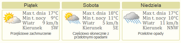 Pogoda w ten weekend raczej nie dopisze. Będzie deszczowo a na termometrach do 18 stopni.