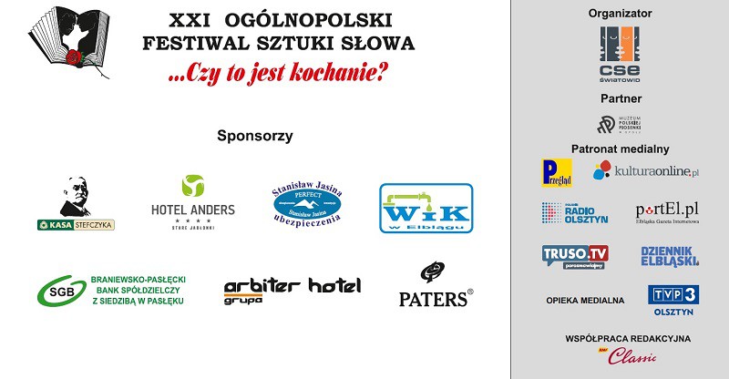 Część turniejowa Ogólnopolskiego Festiwalu Sztuki Słowa „…czy to jest kochanie?” odbędzie się w dniach 17-18 marca. Uroczysta gala z koncertem laureatów i gwiazdy wieczoru nastąpi w niedzielę, 19 marca. Organizatorem konkursu jest Centrum Spotkań Europejskich „Światowid” w Elblągu.