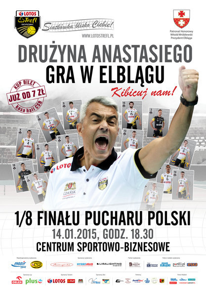 To będzie bez wątpienia najważniejsze wydarzenie tego tygodnia - gdańscy siatkarze LOTOS Trefl po raz pierwszy w historii zagrają w roli gospodarza oficjalnego meczu poza Trójmiastem. W środę, 14 stycznia, o godz. 18.30 areną spotkania żółto-czarnych w 1/8 finału Pucharu Polski będzie hala Centrum Sportowo-Biznesowego w Elblągu. Tego nie można przegapić! Bilety na mecz (normalne 15 zł, ulgowe 7 zł), w którym gdańscy siatkarze zmierzą się z BBTS-em Bielsko-Biała, rozchodzą się jak przysłowiowe świeże bułeczki. Kilka sztuk do wygrania w naszym konkursie.