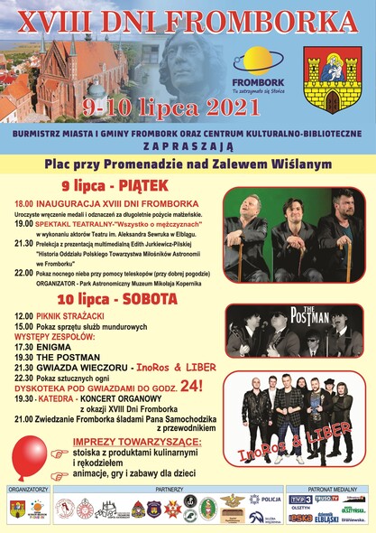 Równolegle odbędą się: koncert organowy w katedrze (19.30), zwiedzanie Fromborka śladami Pana Samochodzika (21).