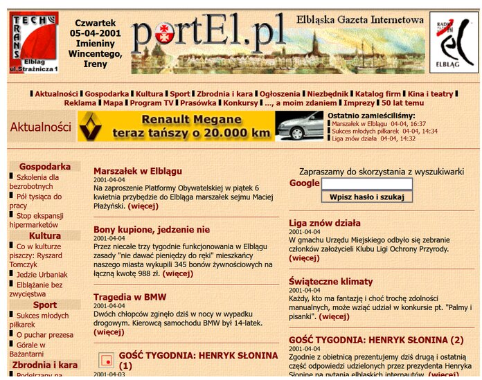 Szanowny Panie, w kwestii faktów - mój kolega Michał nigdy nie był wspólnikiem firmy SOFTEL. Przez jakiś czas pracował u nas jako administrator serwerów. Trojmiasto. pl na początku swojej działalności pomyślane było jako miejski serwis informacyjny (rozkłady jazdy, imprezy, katalog firm itp. ) bez działu prasowego. Według Wikipedii serwis wiadomości bieżących został tam uruchomiony w 2001 roku. Nie wiem, czy miało to miejsce też 1 stycznia. Portel od samego początku zaprojektowany był i zarejestrowany w Sądzie jako typowa gazeta, z tą różnicą, że wydawana wyłącznie w Internecie. Z trójmiejskim serwisem mamy doskonałe relacje i zdarza się, że nawzajem się inspirujemy, natomiast nigdy nie zastanawialiśmy się, kto był pierwszy. Nasze początki były po prostu zdecydowanie różne i nieporównywalne.