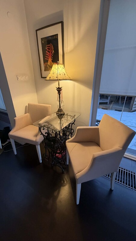 2.Wygodne, tapicerowane krzesło w jasnym, beżowym kolorze. Idealne do salonu lub jadalni. CENA: 80zł sztuka.2 dostępne.