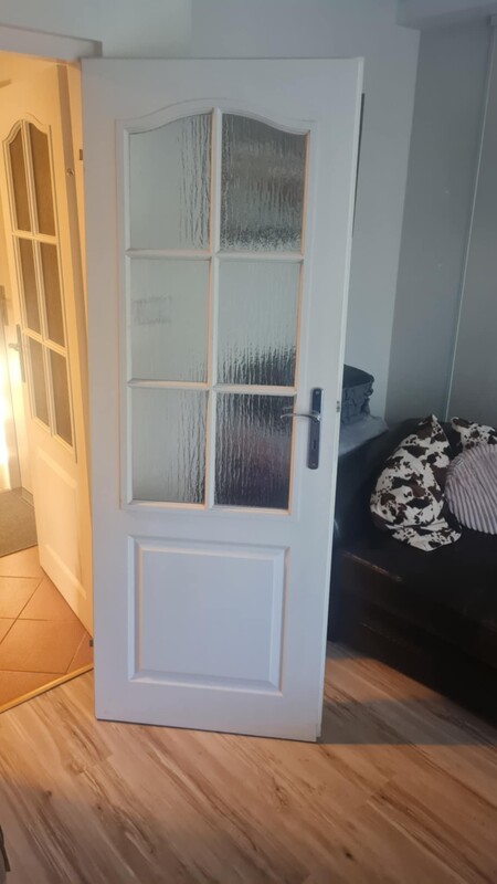 Sprzedam po 150 zł za szt drzwi pokojowe. Przeszklone P i L 70cm h 197 cm. Sypialnia pelne 70 L 197cm, 80 P 202cm i trochę zniszczone bo łazienkowe pelne z otworami 60 L h 194cm. Cana za sztukę 1zł czyli oddam prawie za darmo ale cały zestaw 5 drzwi. Chcę sie ich pozbyć a szkoda je tak wyrzucić.