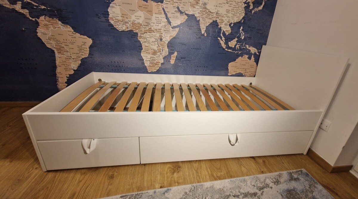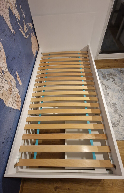 Łóżko zostało zakupione w 2023 roku, było użytkowane przez dziecko, jest w stanie bardzo dobrym, bez uszkodzeń. Łóżko jest wytrzymałe i może służyć przez wiele lat. Sprzedaję łóżko z uwagi na konieczność zakupu łóżka na antresoli.