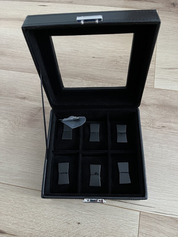 6 oddzielnych przegródek z wyjmowanymi poduszkami na zegarki