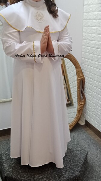 W sprzedaży hurtowej i detalicznej, alby i sukienki do komunii. Kilkadziesiat wzorów w rozmiaryach do 164 cm wzrostu.