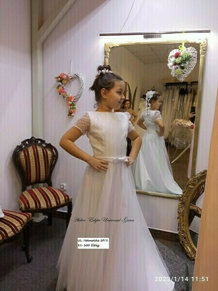 W sprzedaży hurtowej i detalicznej, alby i sukienki do komunii. Kilkadziesiąt wzorów w rozmiarach do 168 cm wzrostu.