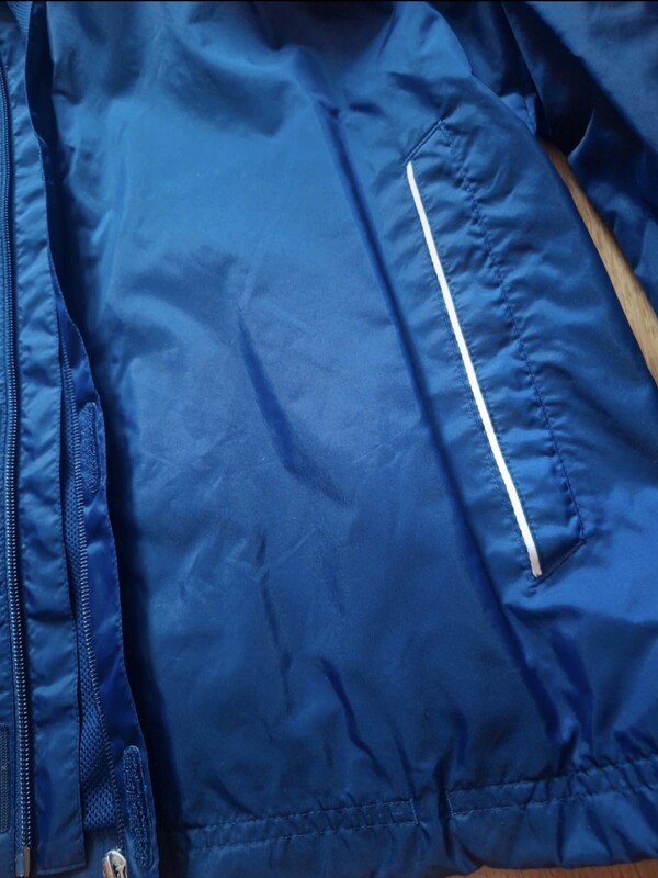 Stan bdb-, syn powycinał długie metki. Zwykłe ślady używania. Zamek sprawny, kaptur odpinany. Świetny prosty krój. Chroni od wiatru i deszczu. Przeciwdeszczowa. Regulacja przy rękawach na rzepy. Kryty zamek. Idealna na kapryśną pogodę ale także w góry czy na kajaki.