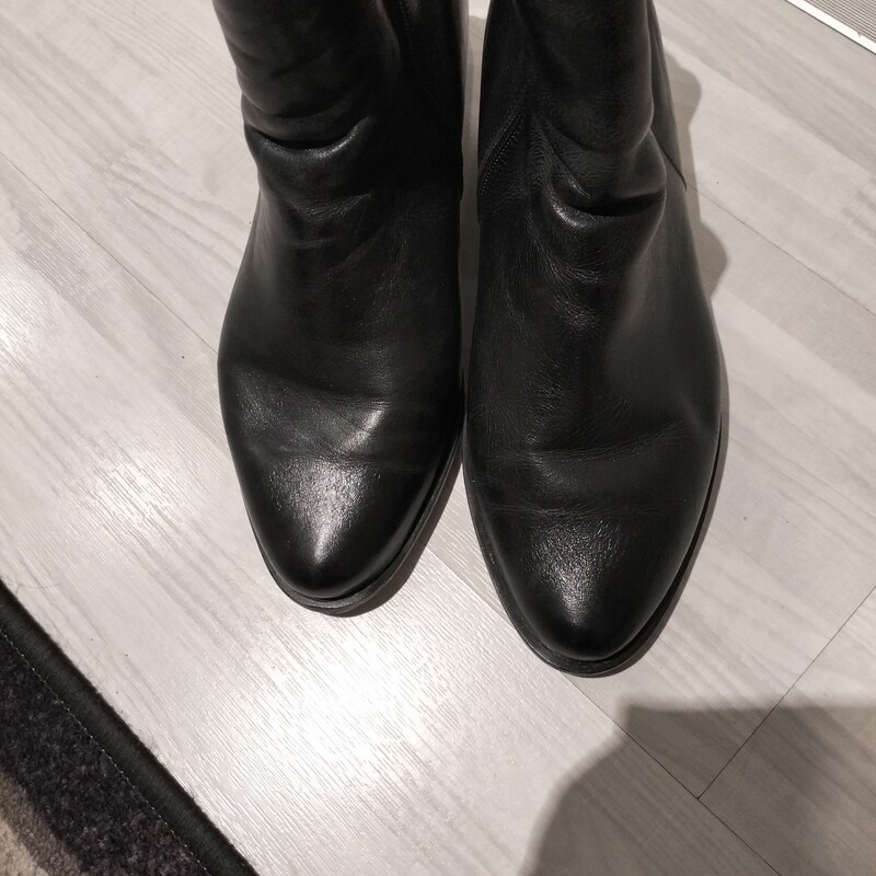 Sprzedaję używane buty damskie skórzane zimowe za kostkę rozmiar 40/41 czarne na zamek, obcas okolo 5/6 cm.