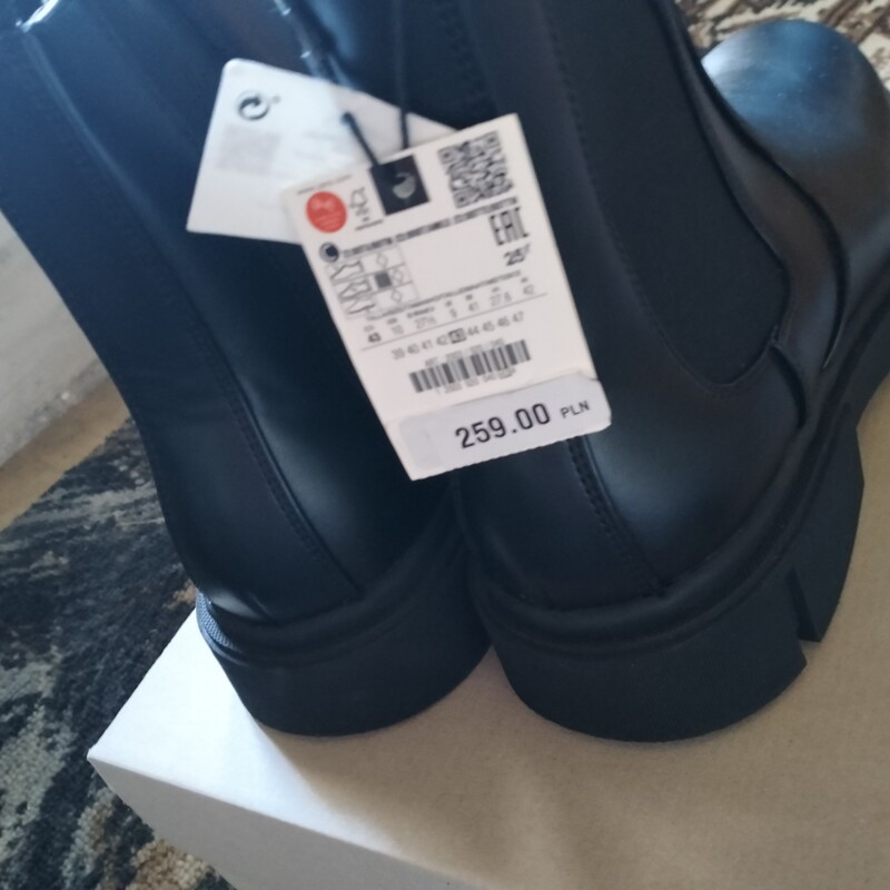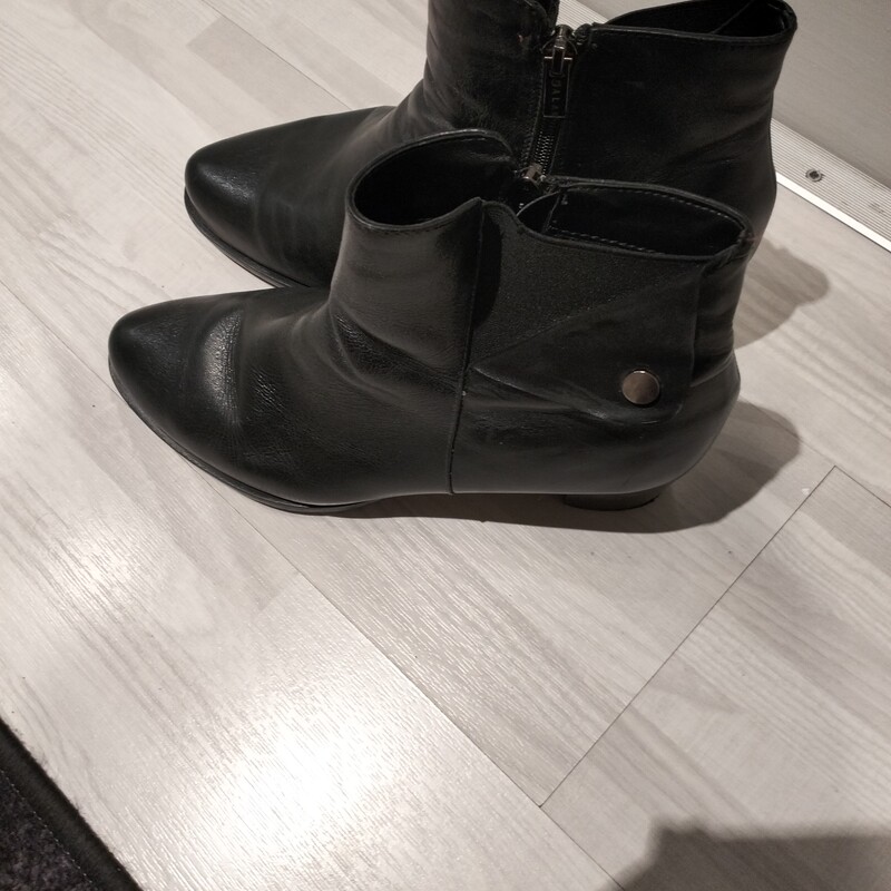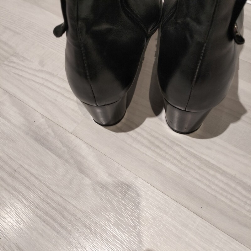 Sprzedaję używane buty damskie skórzane zimowe za kostkę rozmiar 40/41 czarne na zamek, obcas okolo 5/6 cm.