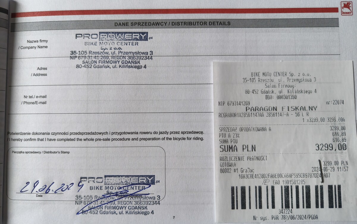 Gwarancja producenta do 29.06.2026.Rower zakupiony w sklepie w Gdańsku.