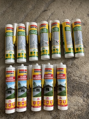 Sprzedam biały akryl Soudal x7 oraz silikon uniwersalny bezbarwny Soudal x5