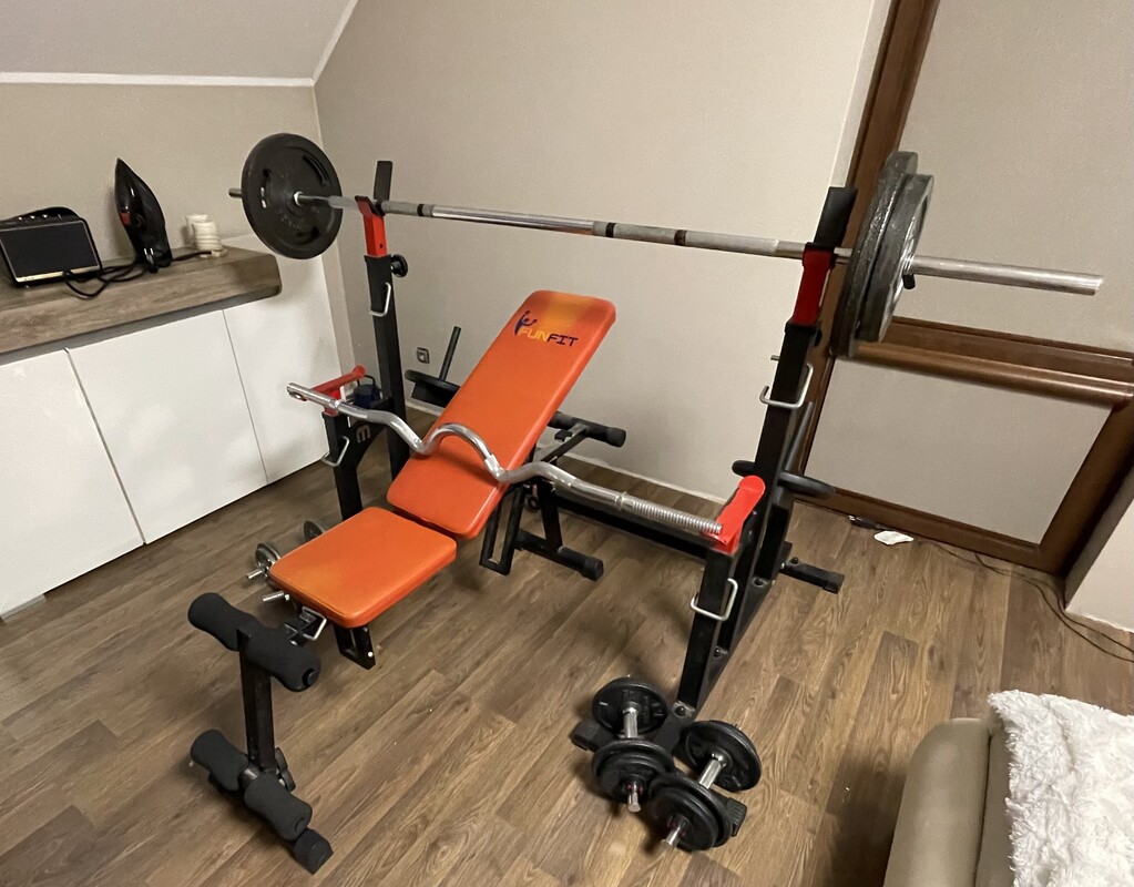 * stojak na sztangę z podporami asekuracyjnymi o regulowanych wysokościach