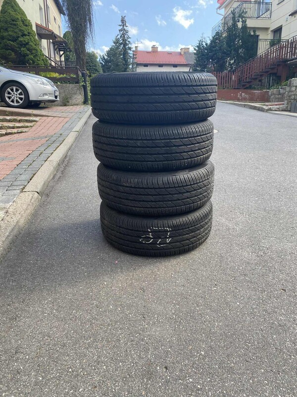 Opony używane tylko jeden sezon, stan bardzo dobry – bieżnik wysoki, bez uszkodzeń, niełatane, przechowywane w suchym miejscu.