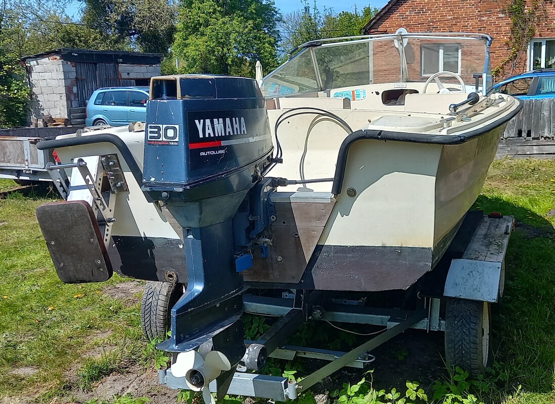 Sprzedam łódz motorową 5 m długości, 2 m szerokości. Łódz posiada przednią szybę, jest sterowana za pomocą kierownicy ze sterociągiem, oraz manetki. Silnik yamaha 30 hp, stan bardzo dobry. Dodatkowo przyczepa podłodziowa portowa. Cena za samą łódz 5900 zł, za silnik 2900 zł, za przyczepę 1900 zł.