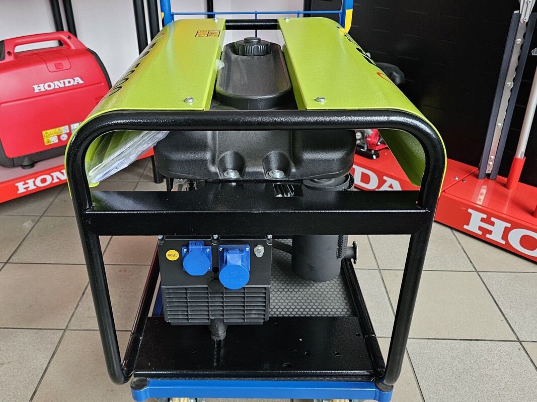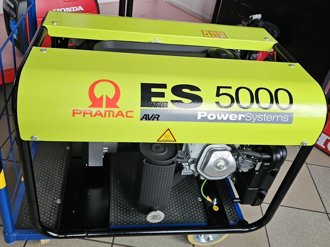 Profesjonalny agregat prądotwórczy PRAMAC ES5000 o mocy nominalnej 4,6 kW z elektronicznym regulatorem napięcia AVR, na prąd jednofazowy. To uniwersalne urządzenie pozwalające na bezpieczeństwo i komfort pracy w każdych warunkach. Zbiornik paliwa o pojemność 11 litrów pozwala mu na ciągłą pracę bez tankowania przy 75% obciążeniu przez ok.6,63 godzin. Urządzenie wyposażone jest w niezawodny, benzynowy silnik HONDA GX270 oraz prądnicę o stopniu ochrony IP23.Takie połączenie gwarantuje wysoką niezawodność i trwałość.