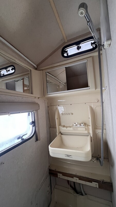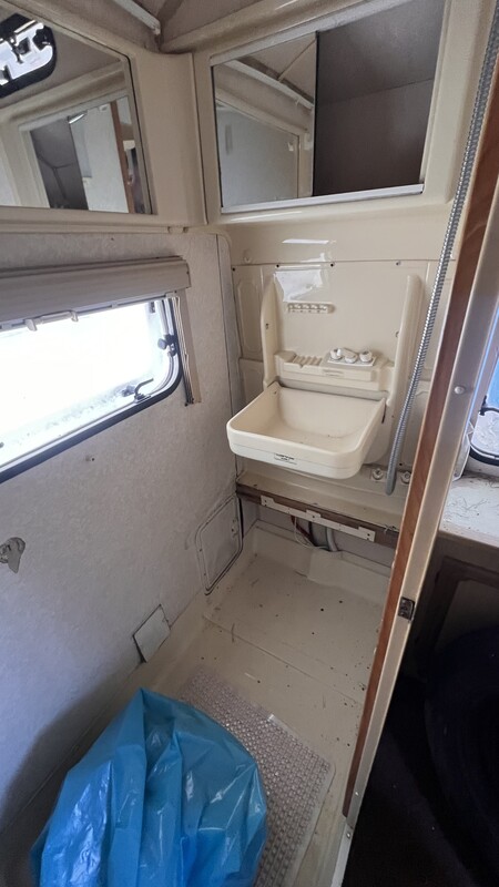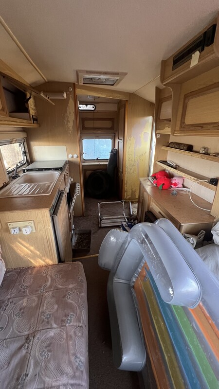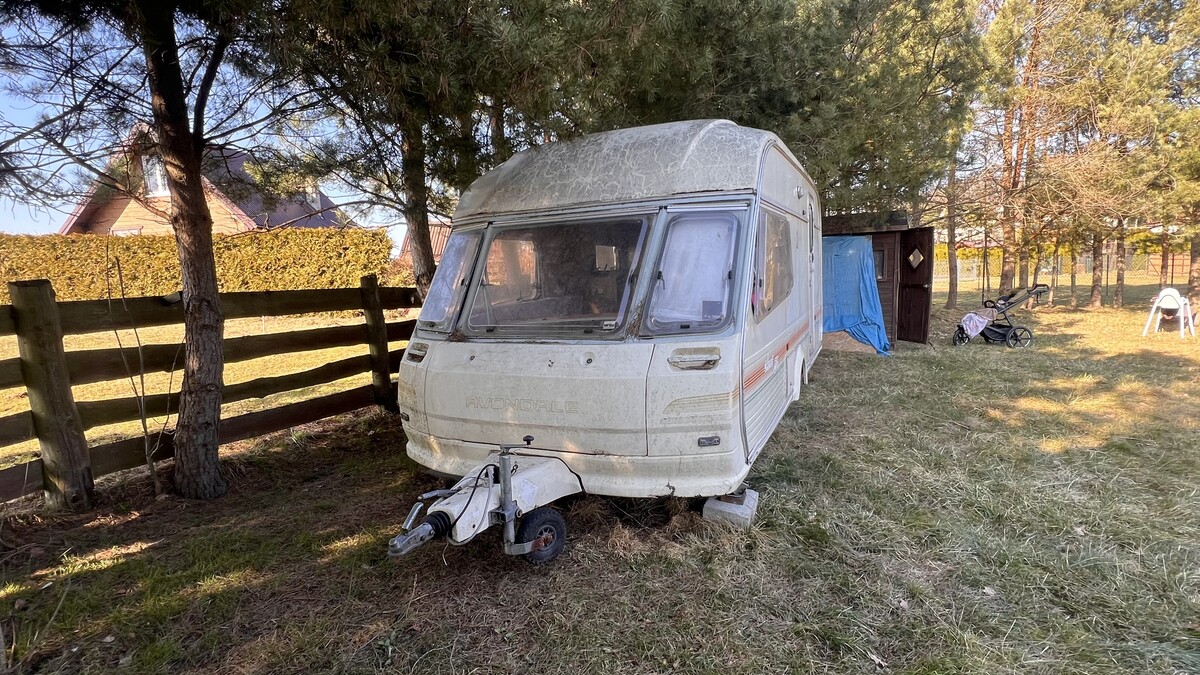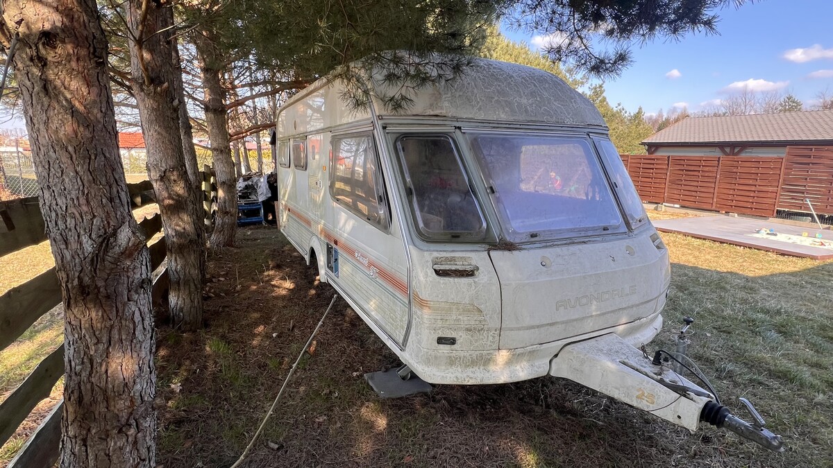 Przyczepa od dwóch lat stoi i służy jako magazyn. Jest zarejestrowana i ubezpieczona. Wyposażenie: kuchenka gazowa, zlew, lodówka, piekarnik, ogrzewanie gazowe, podgrzewacz wody – dwa lata temu wszystko działało. Przyczepa posiada łazienkę z prysznicem, zlewem i toaletą.