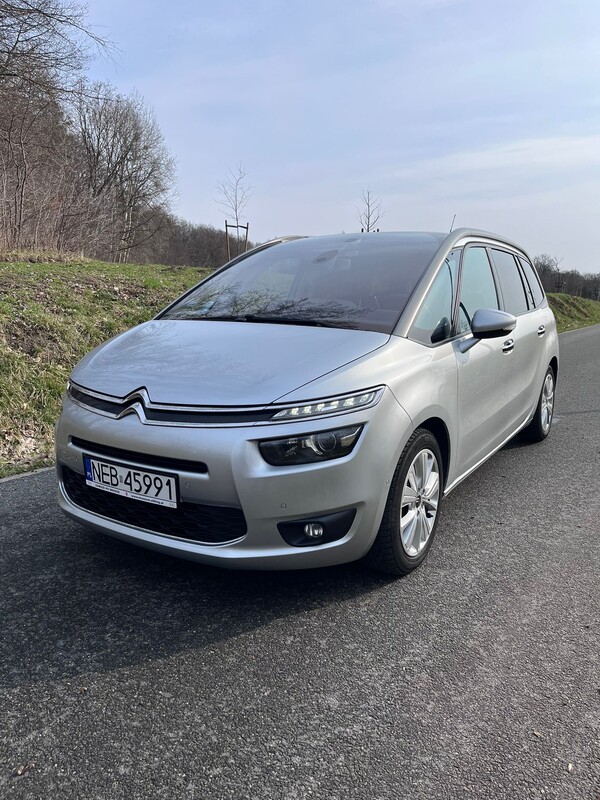 Sprzedam Citroena C4 Grand Picasso z silnikiem 2.0 BlueHDi w wersji Exclusive, 150 km z 2015r i przebiegiem 284 300 km. Auto 7-dmio osobowe.