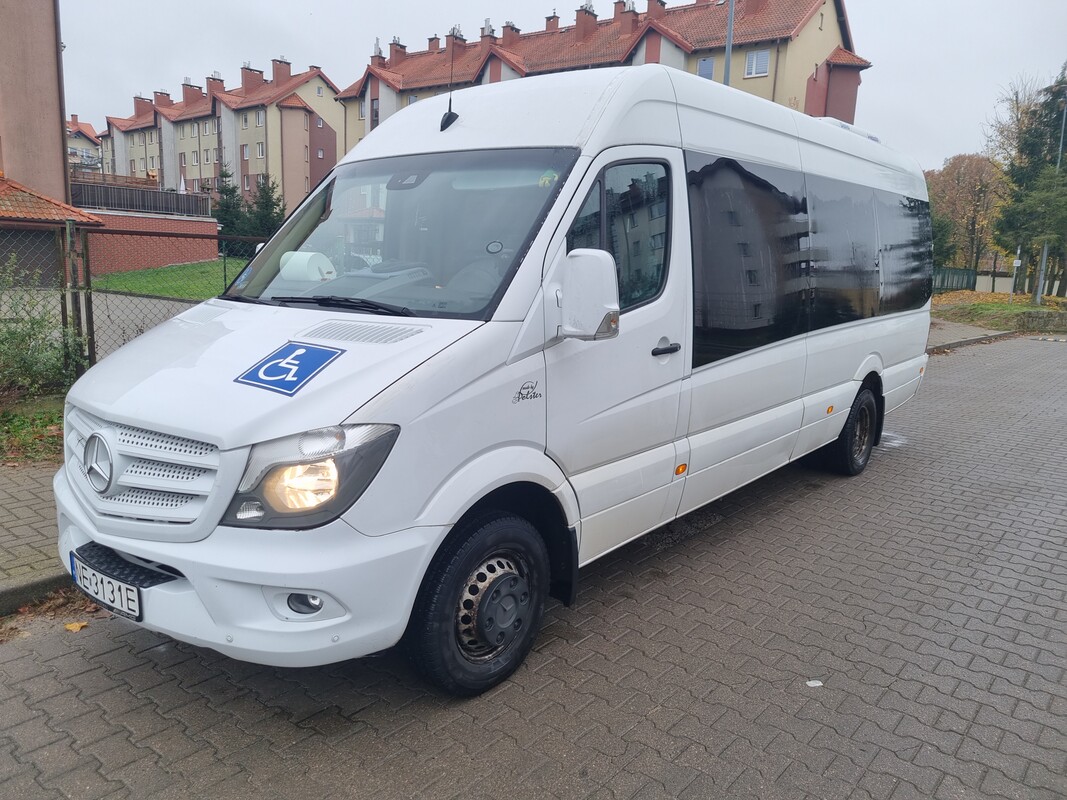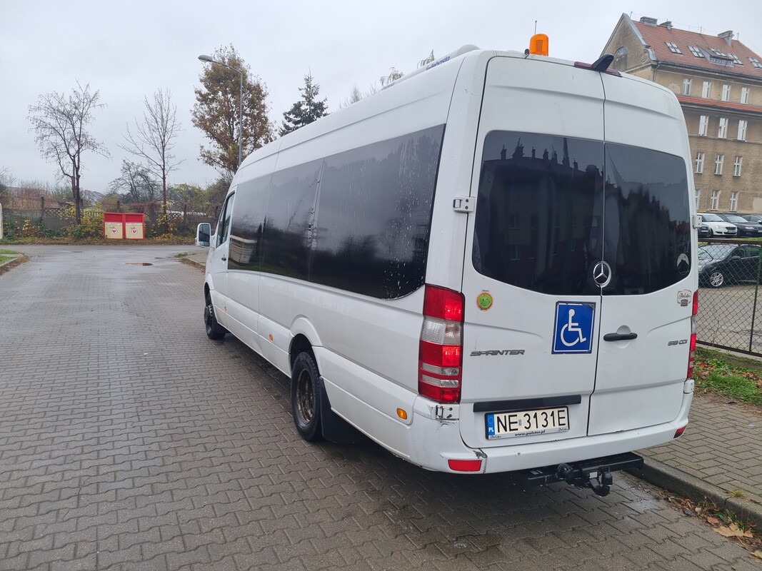 Sprzedam Mercedes Sprinter 519 3.0 cdi (automat) 19+1 os. przystosowany do przewozu osóbz niepełnosprawnościami. Data pierwszej rejestracji - 2017R. Przebieg 194 000 tyś. Auto w codziennej eksploatacji posiada jednego kierowcę.