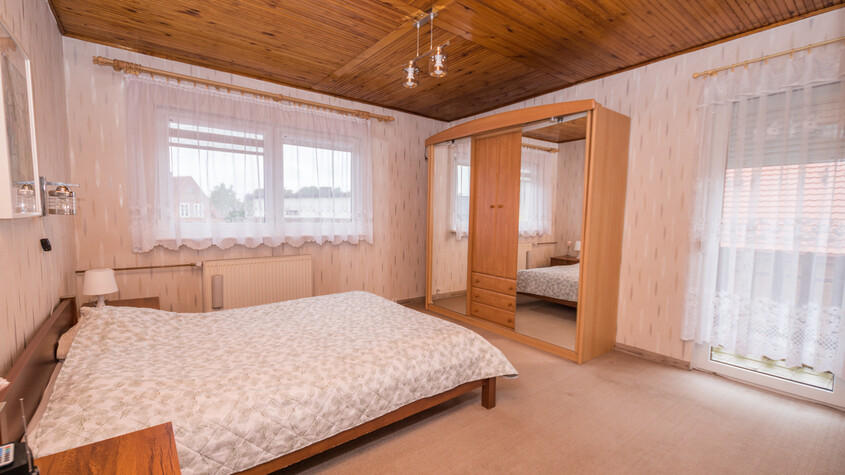 Piętro składa się: z pokoju z wyjściem na balkon, dwóch pokoi, łazienki z wc, pomieszczenia gospodarczego z którego prowadzą schody na poddasze nieużytkowe.