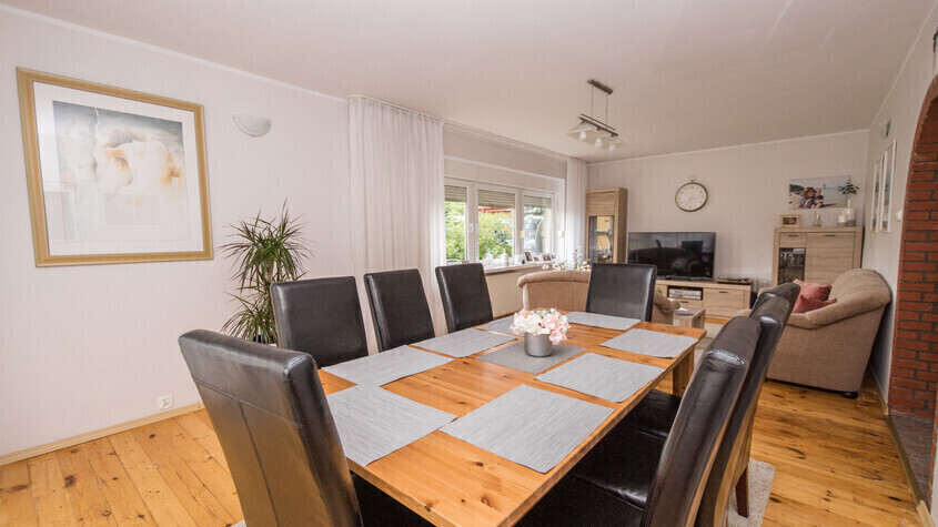 Na sprzedaż dom jednorodzinny wolnostojący o pow. użytkowej 115 m2 na osiedlu domków jednorodzinnych, znajdujący się na działce o pow.734 m2 przy ul. Słonecznej w Nowym Dworze Gdańskim. Możliwość pozostawienia umeblowania widocznego na zdjęciach oraz sprzętu AGD. Kuchnia w zabudowie ze sprzętem AGD: piekarnik, płyta indukcyjna, mikrofala, lodówka oraz pralka.