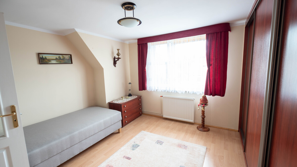 Dom jest jednopiętrowy, podpiwniczony, z garażem wolnostojącym na działce. Na parterze znajduje się duży, słoneczny salon z wystawą południową, przestronna kuchnia, łazienka z WC oraz przedpokój z wejściem do piwnicy i schodami prowadzącymi na piętro. Na pierwszym piętrze znajdują się dwa ustawne pokoje, idealne do urządzenia sypialni, gabinetu czy pokoju dziecięcego.