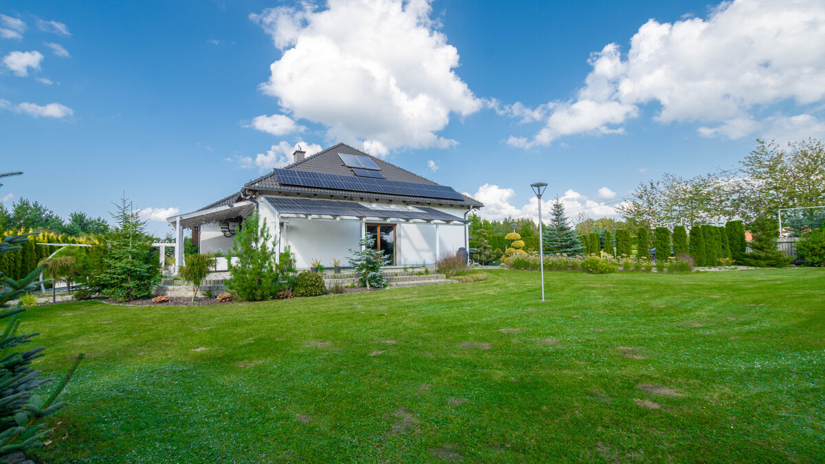 Działka jest ogrodzona, uzbrojona w media takie jak: sieć wodociągowa, elektroenergetyczna, deszczowa, gazowa oraz telefoniczna. Ogród w pełni zagospodarowana z licznymi nasadzeniami z przestrzennym miejscem na relaks, zabawę z dziećmi czy organizację spotkań na świeżym powietrzu. Całość położona jest w otoczeniu domów jednorodzinnych, na spokojnym osiedlu, z dogodnym dojazdem oraz infrastrukturą w zasięgu ręki.. W ogrodzie znajduje sie, strefa grillowa z ławeczkami oraz paleniskiem. Dodatkowo dwie szklarnie oraz budynek gospodarczy. Przygotowana konstrukcja stalowa pod saunę a taras jest wyposażony w jacuzzi .