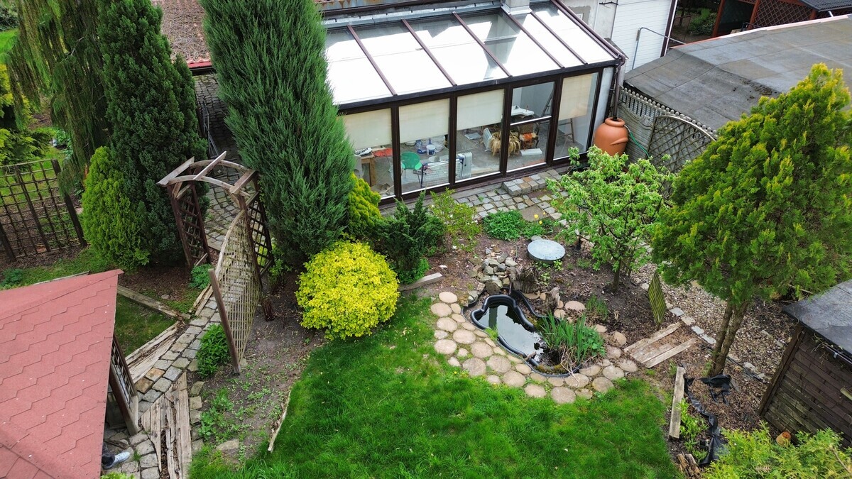Dom w 2004 roku został rozbudowany i zyskał funkcjonalną, przestronną aranżację wnętrz. Na parterze znajduje się duży, jasny salon z częścią wypoczynkową i jadalnią, kuchnia z wyjściem do pięknej oranżerii, łazienka z WC oraz przedpokój.