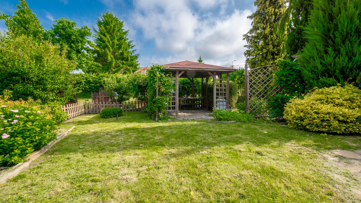 Działka jest w całości ogrodzona i starannie zagospodarowana. Znajdują się tu m. in. : derenie, żywopłot z tui, tamaryszek drobnokwiatowy, jałowce, piwonie, jabłoń, pigwy, bez oraz agrest. To miejsce pełne kolorów i wyjątkowego klimatu.