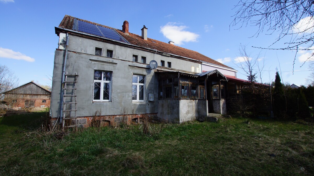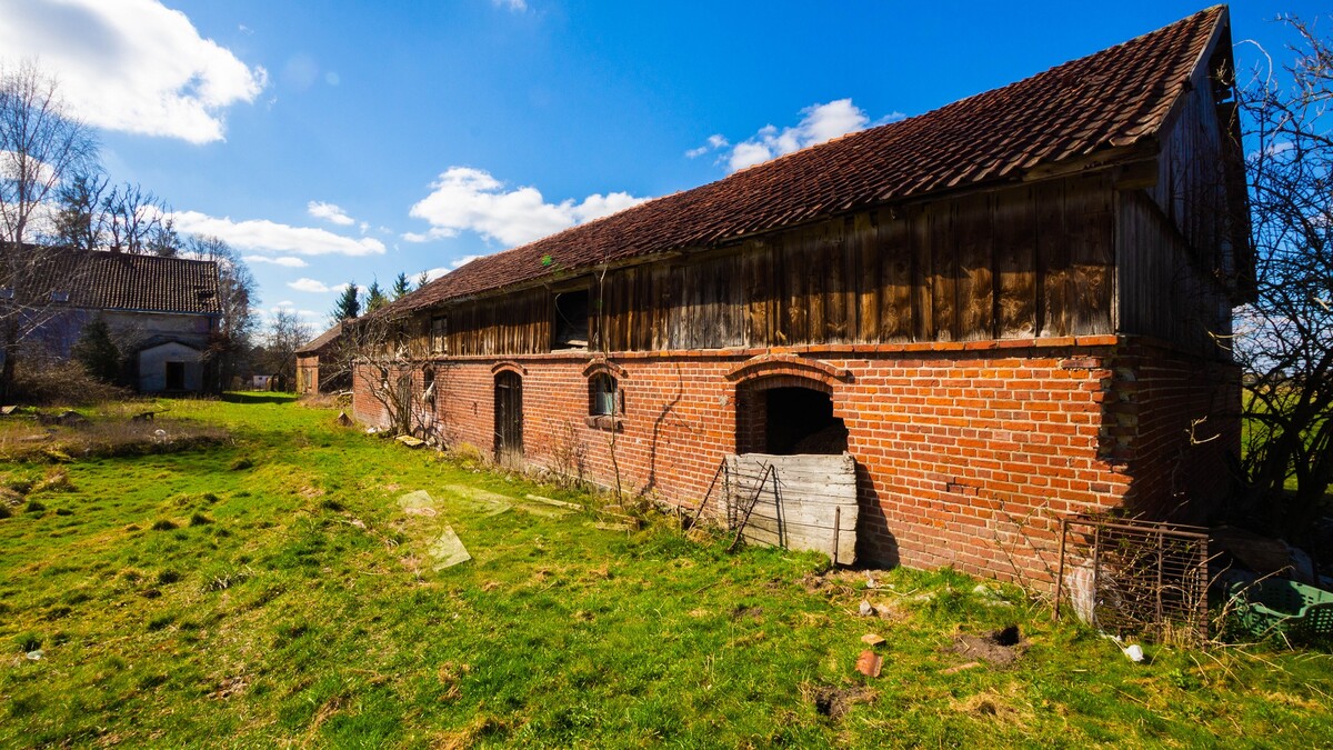 Nieruchomość o powierzchni 2,9 ha obejmuje dom w zabudowie bliźniaczej (ok.80 m²) do generalnego remontu, z możliwością adaptacji poddasza. Na działce znajdują się również budynki gospodarcze (stodoła, obora, budynek z cegły), co daje szerokie możliwości wykorzystania – m. in. pod działalność rolniczą lub agroturystyczną.