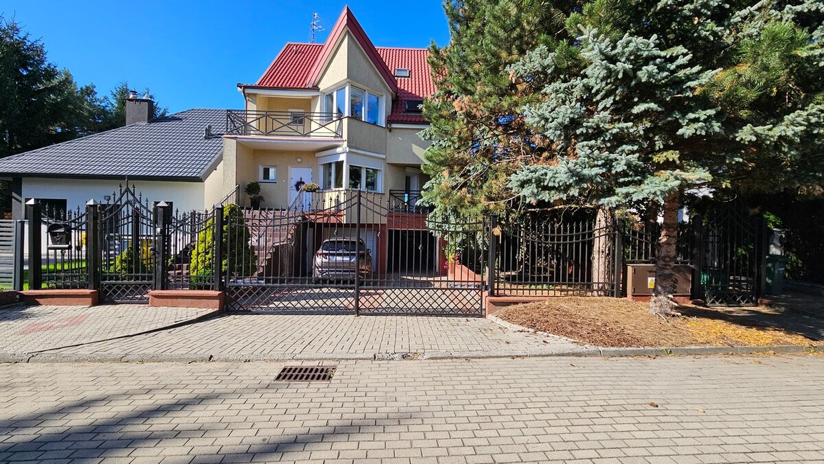 Budynek mieszkalny to obiekt wolnostojący, czterokondygnacyjny z poddaszem użytkowym i garażem dwustanowiskowym w kubaturze, murowany ze stropem żelbetonowym, z konstrukcji drewnianej kopertowym pokrytym blachodachówką.