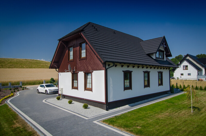 Dom wykonany jest z wysokiej jakości drewna suszonego komorowo i struganego czterostronnie
