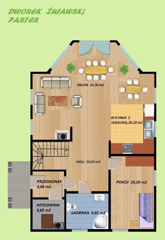 Dom drewniany Dworek Żuławski jest zgrabnym i przytulnym domem całorocznym o wymiarach 8,0 x 12,0m i powierzchni użytkowej 155,02m2.