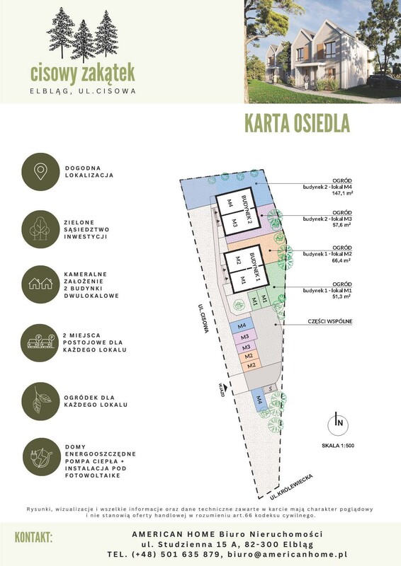 Wyobraź sobie poranek, w którym budzi Cię zapach świeżo pieczonego ciasta. Słońce wpada przez panoramiczne okna, a Ty pijesz herbatę w ogrodzie, podczas gdy dzieci bawią się bezpiecznie na zielonym trawniku. Tak zaczynają się dni w Cisowym Zakątku nowym, kameralnym osiedlu nowoczesnych domów bliźniaczych w Elblągu, przy ul. Cisowej. To miejsce, gdzie technologia budownictwa spotyka się z komfortem życia codziennego, a każdy detal służy Twojej wygodzie.