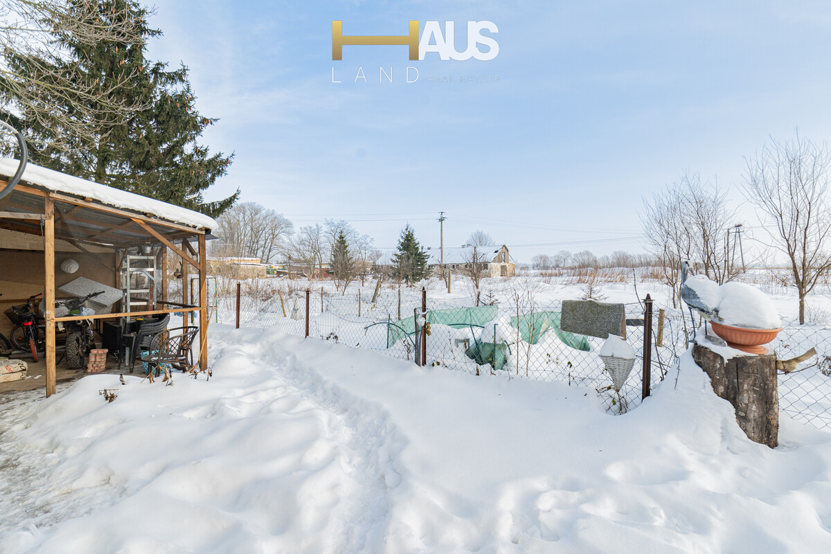 Dom usytuowany jest na zadbanej, w pełni ogrodzonej działce o powierzchni około 240 m², która zapewnia prywatność oraz wygodną przestrzeń do codziennego użytkowania. Na posesji znajduje się blaszany garaż oraz wiata parkingowa, co gwarantuje bezproblemowe parkowanie samochodu oraz dodatkowe miejsce do przechowywania.