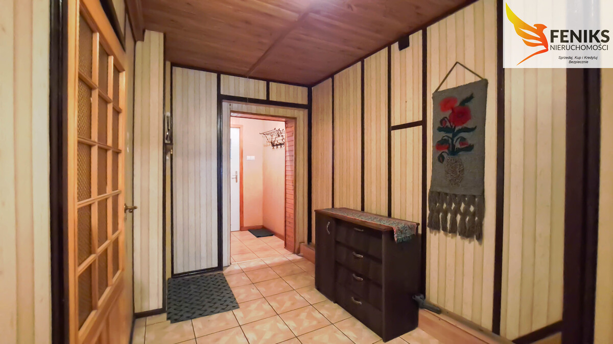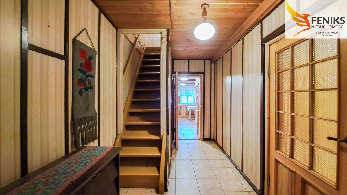 Na sprzedaż oferowana jest 1/4 budynku wielorodzinnego o powierzchni 97,67 m², składająca się z czterech pokoi i położona na dużej, zielonej działce. Na parterze znajduje się wiatrołap, łazienka z WC, kuchnia oraz dwa przechodnie pokoje, a także niewielka komórka gospodarcza. Na poddaszu mieszczą się dwa kolejne pokoje, z czego z jednego z nich prowadzi wyjście na przestronny taras, który stanowi idealne miejsce do wypoczynku. Dodatkowo, istnieje możliwość adaptacji strychu na dodatkowe pomieszczenie mieszkalne. Budynek jest podpiwniczony – powierzchnia piwnicy wynosi 5,65 m². Ogrzewanie domu oraz podgrzewanie wody realizowane jest za pomocą pieca na pelet. Obecnie nieruchomość korzysta z szamba, jednak trwa już podłączanie do kanalizacji. Okna wychodzą na wschód i zachód, co zapewnia dobre doświetlenie wnętrz o każdej porze dnia. Nieruchomości towarzyszy piękne otoczenie – do dyspozycji nowego właściciela są aż trzy przynależne działki o łącznej powierzchni 1396 m²: ogród wokół budynku mieszkalnego, teren przy budynku gospodarczym oraz działka ogrodowa z garażem. To idealna propozycja dla osób poszukujących funkcjonalnego domu z dużą przestrzenią na zewnątrz.