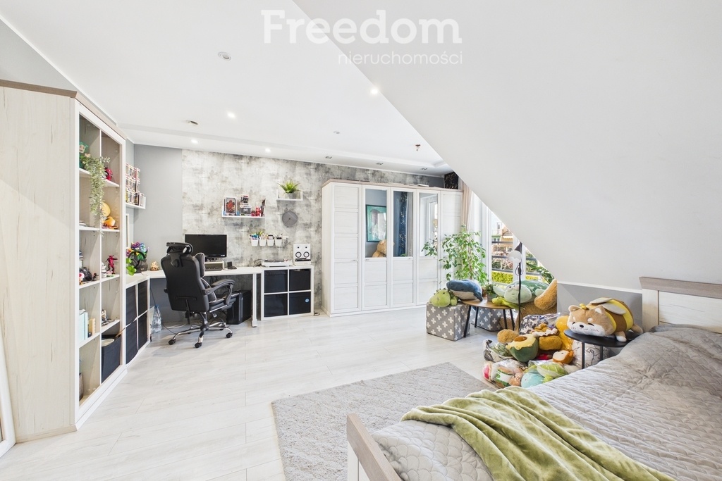 - zaadaptowane poddasze stanowiące dodatkową, funkcjonalną przestrzeń do własnej aranżacji – idealne jako strefa rekreacyjna, gabinet, pokój dla gości lub dodatkowe sypialnie, w tej chwili używane jako domowa siłownia.