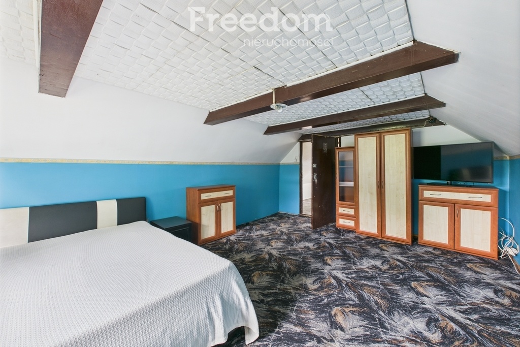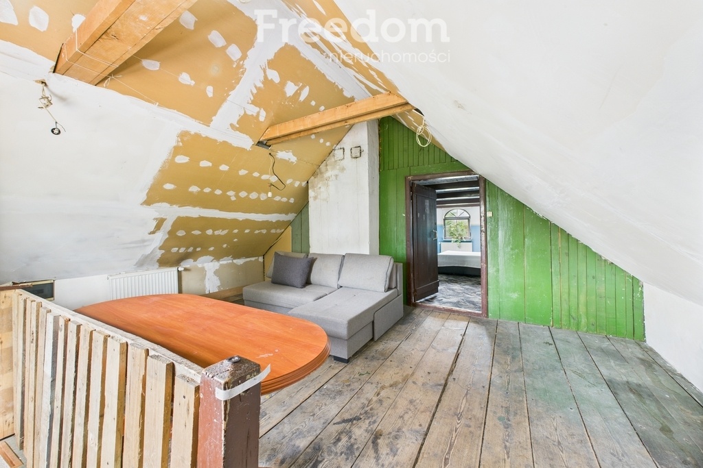Budynek ma 5 pokoi, oddzielną, widną kuchnię oraz 1 łazienkę. Układ pomieszczeń pozwala na wygodne życie rodziny lub stworzenie funkcjonalnej przestrzeni pod wynajem lub działalność. Dom wymaga lekkiego remontu, co daje możliwość dostosowania wnętrz do własnych potrzeb i gustu.