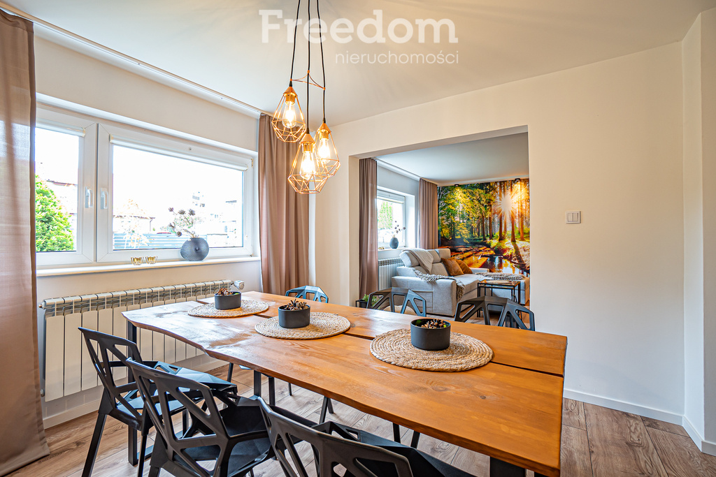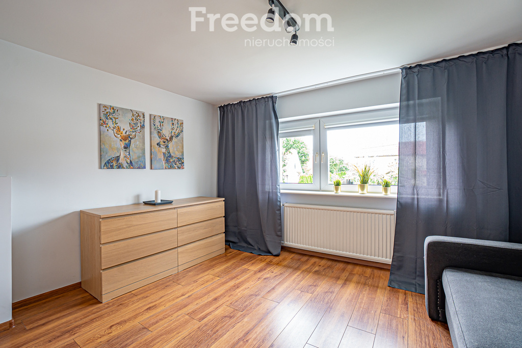 A comfortable house for rent in a quiet part of town – Iławska Street, Elbląg. A spacious and functional semi-detached house with an area of approximately 120 m² is available for rent in a quiet and intimate part of town. The property is located on a gated, residential street with little traffic, ensuring comfort, safety, and a peaceful atmosphere. The location offers convenience. Public transport stops, shops, a kindergarten, a hospital, and clinics are located nearby. An additional advantage is the proximity of green areas, including the popular Bażantarnia park and bicycle routes leading to Krasny Las and the Elbląg Upland Landscape Park. This is an ideal place for those who value an active lifestyle and contact with nature. Functional layout The house consists of two levels: Ground floor: - spacious living room with dining area (26 m²) – a relaxation area with a comfortable sofa, large TV, and atmospheric fireplace, - separate, fully equipped kitchen (15.9 m²), - bathroom (7.7 m²) with a bathtub, toilet, bidet, and double sink, - hallway (9 m²). First floor: - three comfortable rooms (17.5 m², 13.5 m², 13 m²), - toilet, - hallway. The interiors are modern and decorated in bright, friendly colors. The bedroom has a large bed, and the other rooms have fold-out sleeping areas. Plot and Surroundings: The house is situated on a fenced plot of 681 m². Tenants have access to: - a detached garage - a carport - a garden with tall trees, creating a unique, green atmosphere conducive to relaxation. Additional information: - municipal heating and hot water - an additional fireplace in the living room with a central heating function - PVC windows facing south, west, and north – providing ample interior lighting. This is an ideal option for families or those seeking a comfortable home in a quiet location with access to all city amenities. Call and schedule a viewing – this house is truly worth seeing in person. Katarzyna Szar A real estate agency fee of one month's rent should be included in the lease.